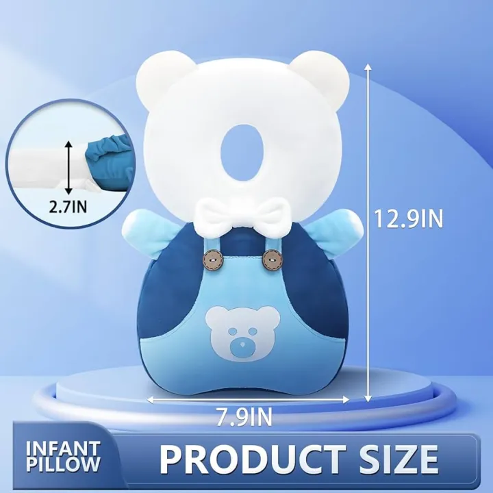 Designed to help prevent “flat head syndrome” (plagiocephaly), this adorable infant pillow features a central concave opening to provide ergonomic support for a baby’s developing head. Crafted in a charming bear design with blue overalls, it serves as both a functional sleep aid and a decorative nursery accessory.