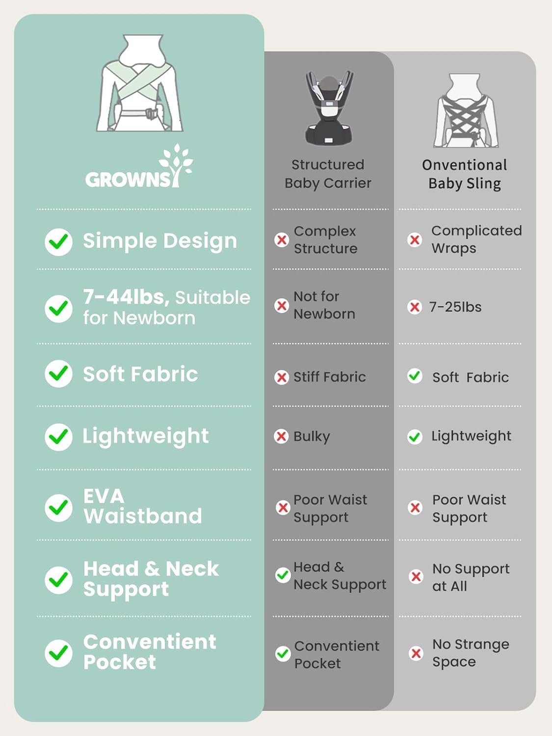 2. Soft And Skin-Friendly Fabric: GROWNSY infant carrier is made from Soft and breathable fabric, Like a mother’s embrace, provides babies comfortable and secure feeling protect baby’s delicate skin. Provide your baby with a warm and comfortable experience, helping to build a close and trusting relationship between you and your baby
