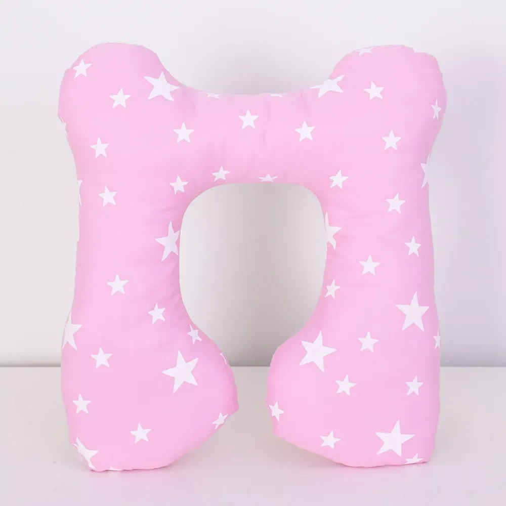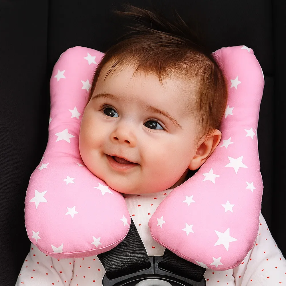 This soft, U-shaped neck pillow is designed specifically for infants and toddlers to provide gentle support and comfort. Featuring a charming pink fabric with white star patterns, it helps stabilize a child’s head during travel in strollers, car seats, or bouncers. Its ergonomic shape prevents the head from slumped positions, ensuring a cozy and secure resting experience.